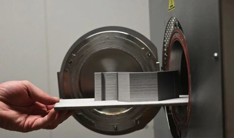เตาเผาเป็นอุปกรณ์สำคัญในกระบวนการนี้และปัจจุบันใช้เตาเผาสูญถูกสุญญากาศหรือบรรยากาศ อดีตหลีกเลี่ยงการเกิดออกซิเดชันของชิ้นส่วนที่อุณหภูมิสูงผ่านสูญญากาศสูงในขณะที่หลังป้องกันการเกิดออกซิเดชันของชิ้นส่วนผ่านการลดบรรยากาศ ในระหว่างกระบวนการเผาอุณหภูมิมักจะถูกตั้งค่าต่ำกว่าอุณหภูมิหลอมละลายเล็กน้อยของวัสดุที่ใช้ กระบวนการเผาสามารถลดความพรุนของชิ้นส่วนและเพิ่มความแข็ง นอกจากนี้ยังเหมาะสำหรับการพิมพ์โลหะแล้วกระบวนการบำบัดความร้อนนี้ยังเหมาะสำหรับการพิมพ์เซรามิก