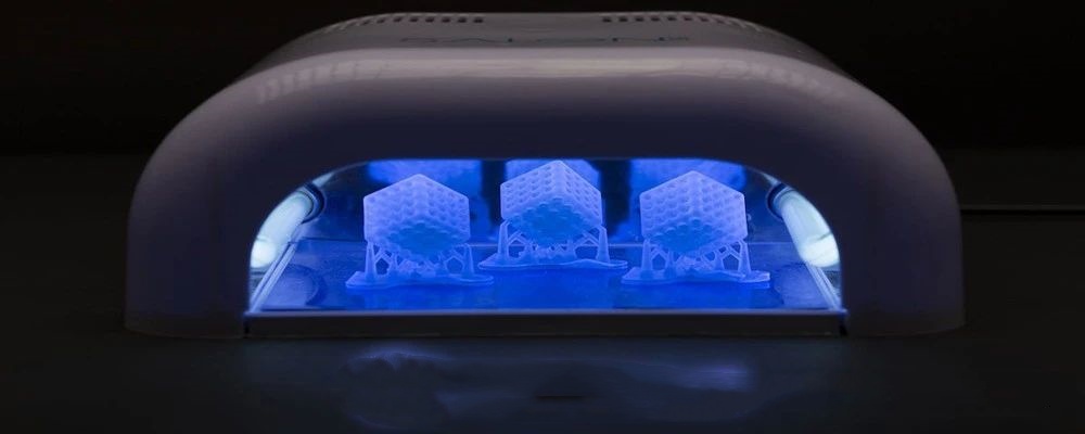ในปัจจุบันการพิมพ์ Photopolymer 3D ยังต้องมีการรักษาโพสต์เพื่อปรับปรุงประสิทธิภาพสุดท้ายซึ่งเป็นขั้นตอนการชุบแข็งหรือการบ่ม เรซิ่นประกอบด้วยโมโนเมอร์หลายตัวที่ไม่ได้เชื่อมต่อกันในสภาวะของเหลว เมื่อสัมผัสกับแหล่งกำเนิดรังสียูวีโมโนเมอร์ที่เหมือนกันเหล่านี้จะรวมกันเพื่อสร้างส่วนประกอบที่ต้องการ อย่างไรก็ตามหลังจากการพิมพ์บางพื้นที่อาจไม่ได้รับการเชื่อมโยงข้ามที่ดีที่สุดซึ่งมีความเสี่ยงที่จะทำลายความต้านทานโดยรวมของส่วนประกอบการพิมพ์ นี่คือที่ที่ขั้นตอนการชุบแข็งเข้ามาเล่นเพราะมันจะทำให้ปฏิกิริยาเชื่อมขวางเสร็จสมบูรณ์