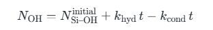 ในหมู่พวกเขา khyd คือค่าคงที่อัตราการไฮโดรไลซิส kcond คือค่าคงที่อัตราการควบแน่นของการคายน้ำ และคือเวลาในการรักษา แบบจำลองนี้สามารถอธิบายแนวโน้มวิวัฒนาการของกลุ่มไฮดรอกซิลในเชิงปริมาณด้วยการบำบัดความร้อนหรือการบำบัดความร้อนแบบเปียก